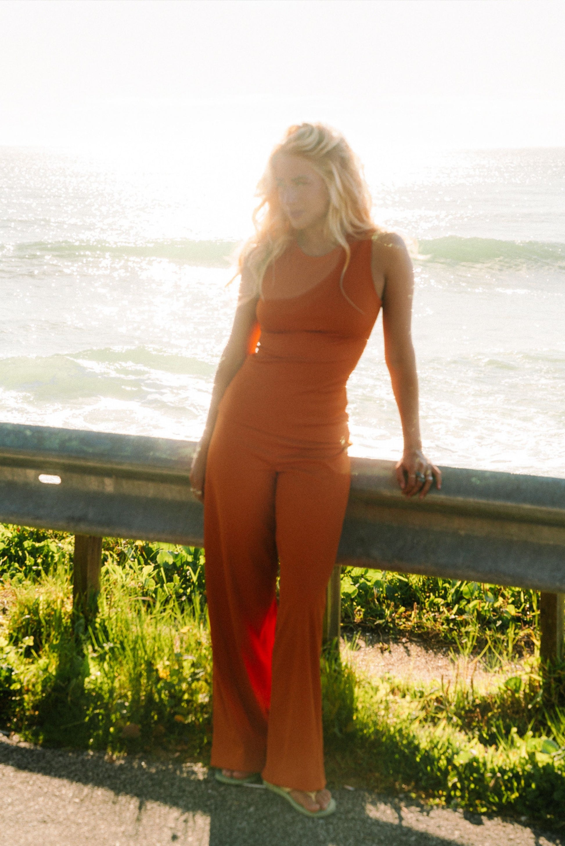 Calça wide leg, confeccionada em tecido canelado composto de poliamida e elastano, com toque macio e caimento fluido. De cintura alta e cós reto, valoriza a silhueta enquanto garante conforto. A modelagem ampla, que se mantém desde o quadril até a barra, cria um visual moderno e versátil — perfeito para compor desde looks casuais até combinações mais arrumadas.