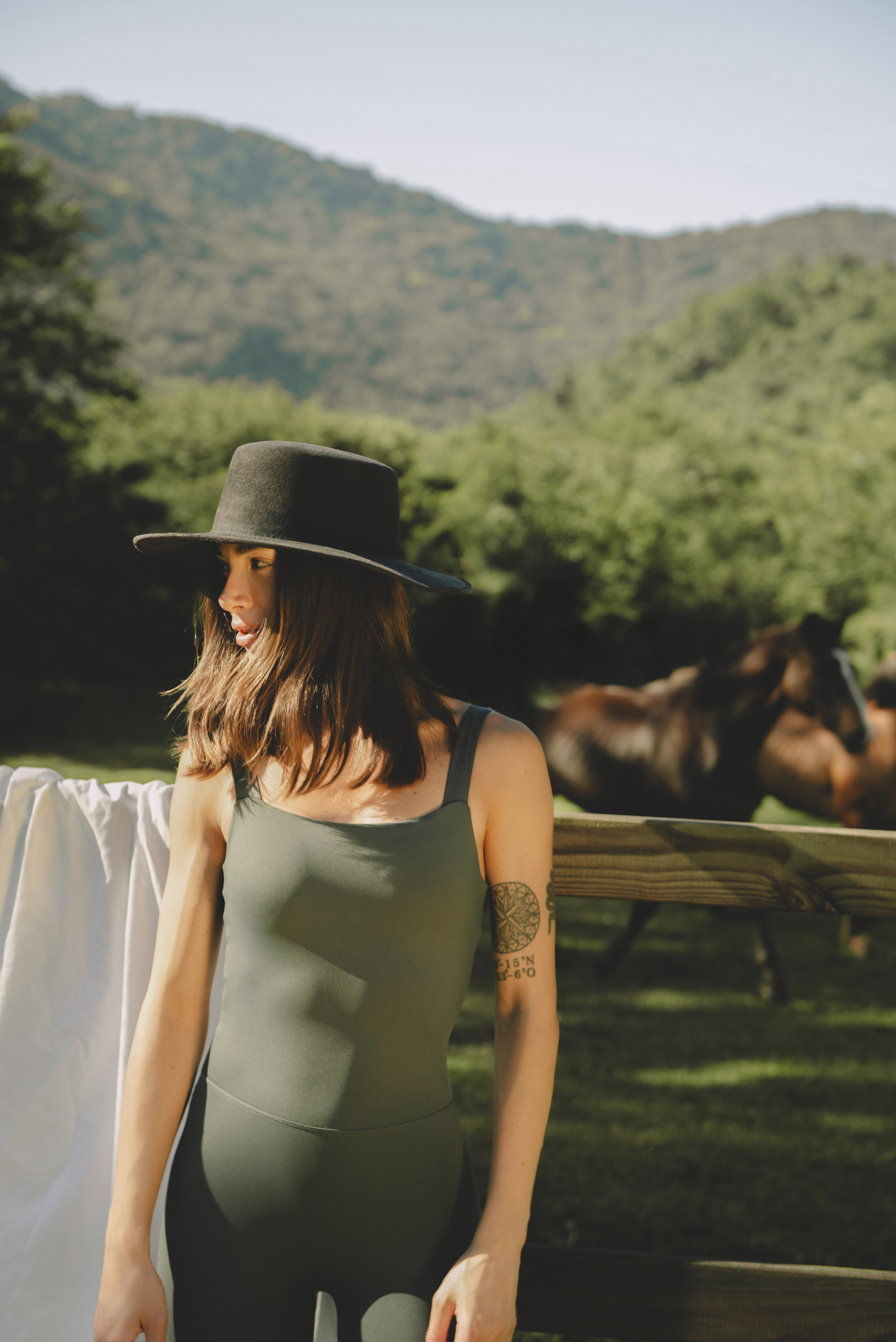 O tecido com compressão média, opaco, toque aveludado e macio, proporcionam uma textura lisinha e uniforme que alinha suavemente a superfície da pele.
